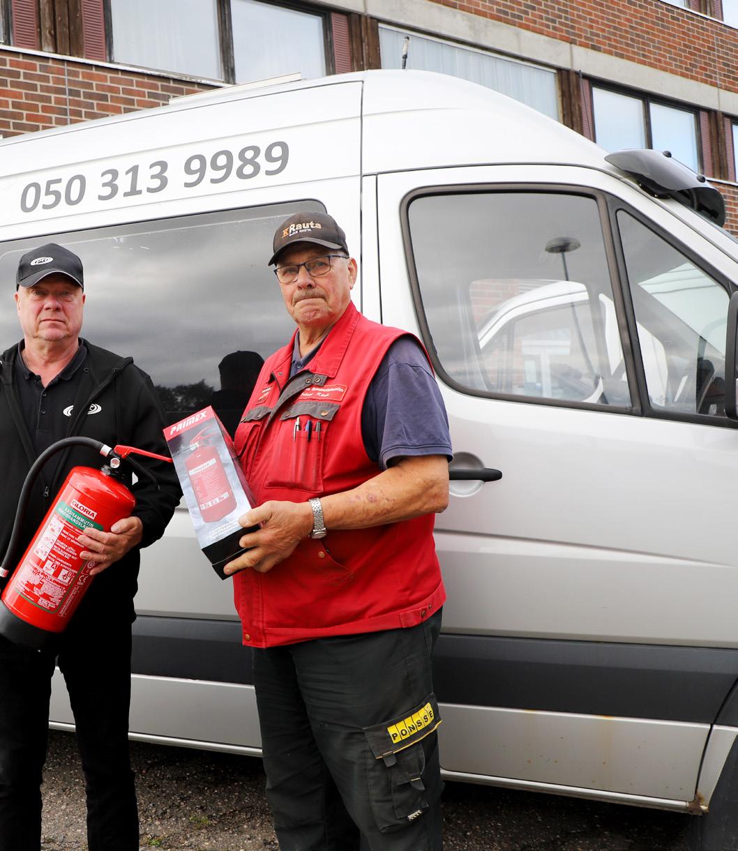 Juhani Kärki (oik.) ja Kari Seppälä ovat sammutinhuoltoalan
