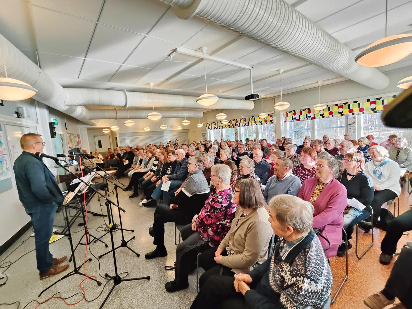 Soinia kuuntelemaan tuli 140 ihmistä. Illan iso otsikko oli ”Kristuksen jalanjälki”. Kuva: Kai Karkulahti