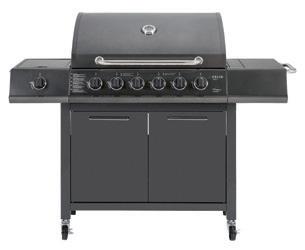 6-poltin kaasugrilli valurautaparilalla ja sivukeittimellä. Grilli pulverimaalattua terästä ja polttimet ruostumatonta terästä.