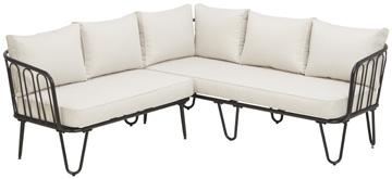 Trendikäs, alumiinirunkoinen mattamustaksi maalattu Cello Capri -kulmasohva, jossa 12 cm paksut pehmusteet.