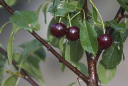 Pensaskirsikka. Marjat tumman ruskeita, kypsinä makeahkoja, manteliin vivahtavia.
