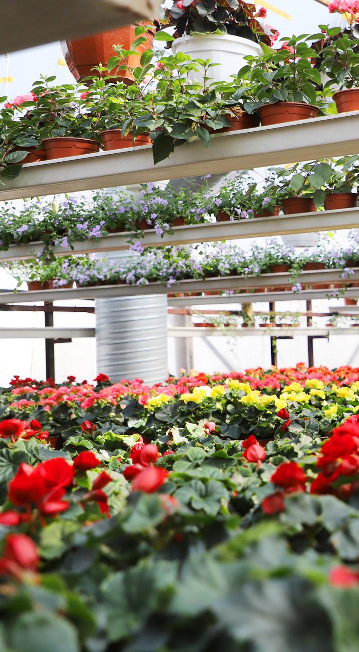Tuhansittain amppeleita ja toinen toistaan upeampia kesäkukkia