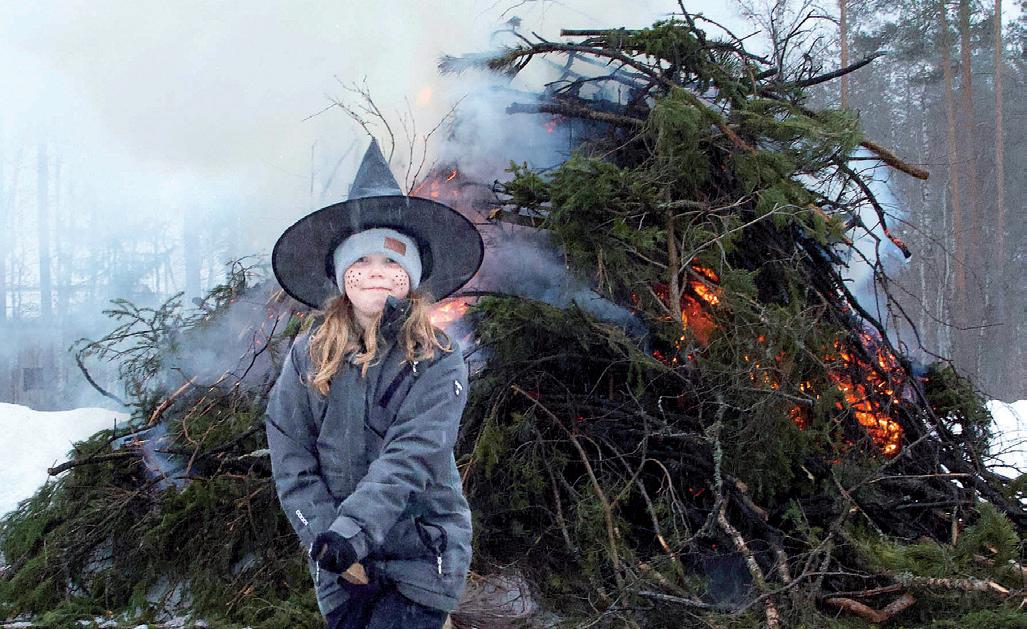 Wanha Woima järjesti pääsiäiskokkotapahtuman lankalauantaina perinnekeskuksen alueella. 7-vuotias Eevi Kämäräinen oli pukeutunut tapahtumaan sopivasti noidan asuun. Laavulla rovaniemeläiset Tiia ja Elina Anttila olivat makkaranpaistossa. Tytöt kertoivat olevansa elämänsä ensimmäistä kertaa pääsiäiskokkoa katsomassa. Kuvat: Kaisa Helaakoski