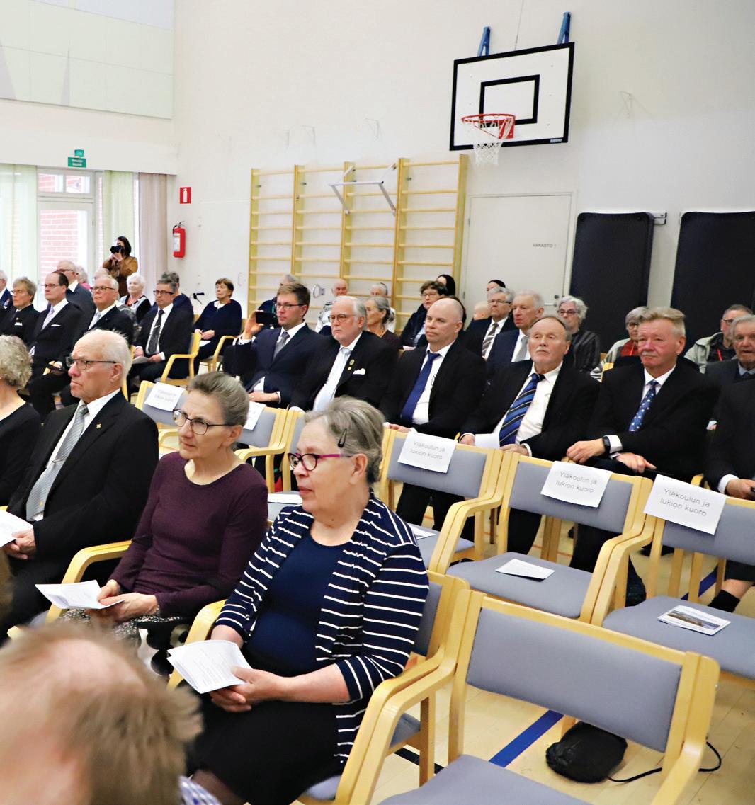 niorimieslaulajat tilaisuuden päätteeksi kolme sävelmää, joista viimeisenä Finlandia-hymnin. Ilman säestystä ja kuoron johtajan Tapani Tirilän johdolla kuoro yltyi sellaiseen suoritukseen, jolla se sai kyyneleen useamman kuulijan silmäkulmaan. Juhlan kruunasi yleisön yhdessä laulama Maamme laulu.