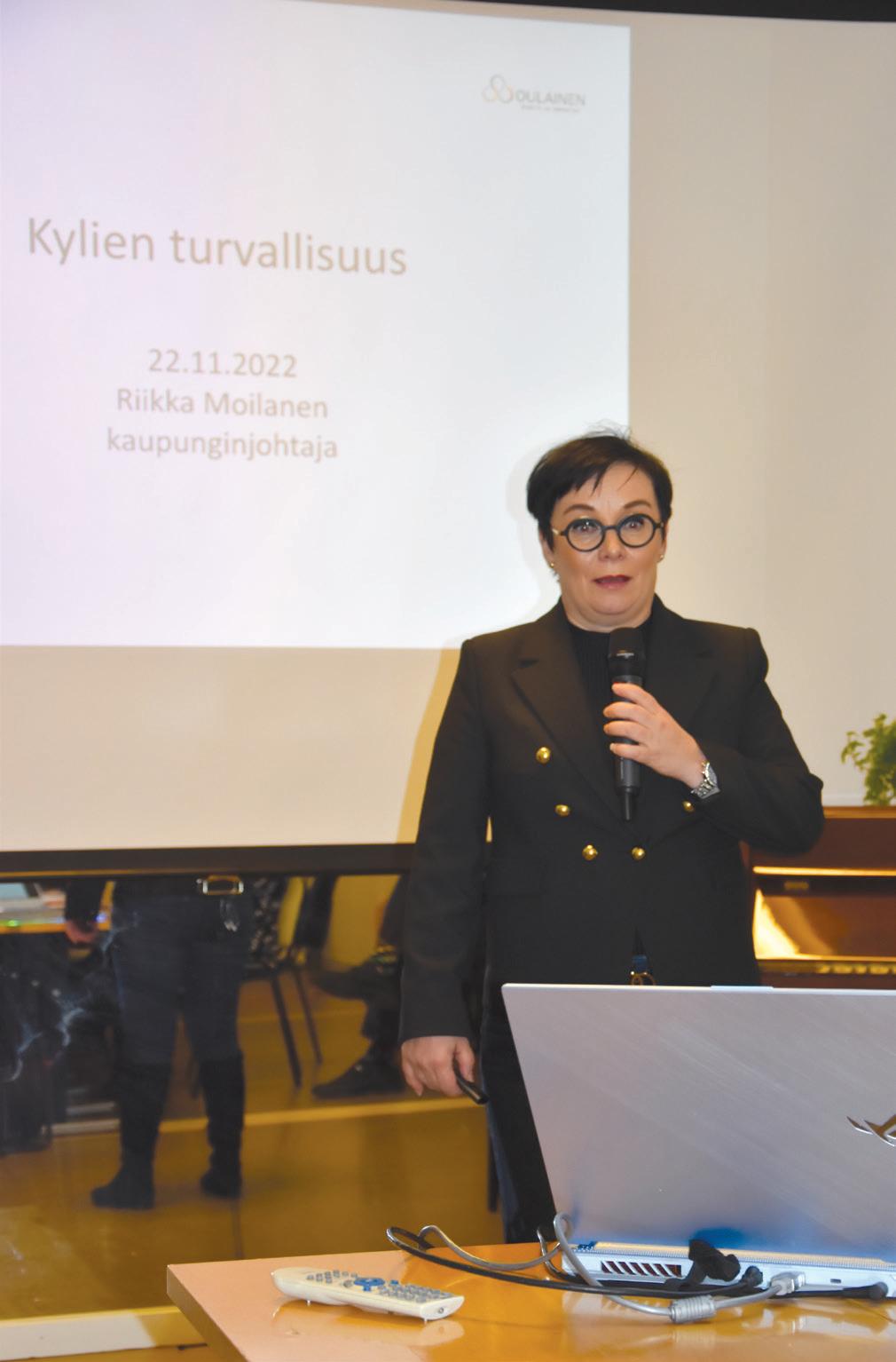 kaupunginjohtaja Riikka Moilanen kertoi Oulaisten kaupungin huoltovarmuu desta ja varautumissuunni telmasta. Moilanen kertoi, että kaupungin toiminnot pyritään turvaamaan kai kissa olosuhteissa, oli ky seessä sitten normaaliolo jen erityistilanne, häiriöti lanne tai poikkeusolot. Näi tä voivat olla esimerkiksi sähkökatkot, tietomurrot, laajat epidemiat, kyber hyökkäykset, juomaveden saastuminen tai suuronnet tomuudet. Valmiussuunni telman mukaisten toimen