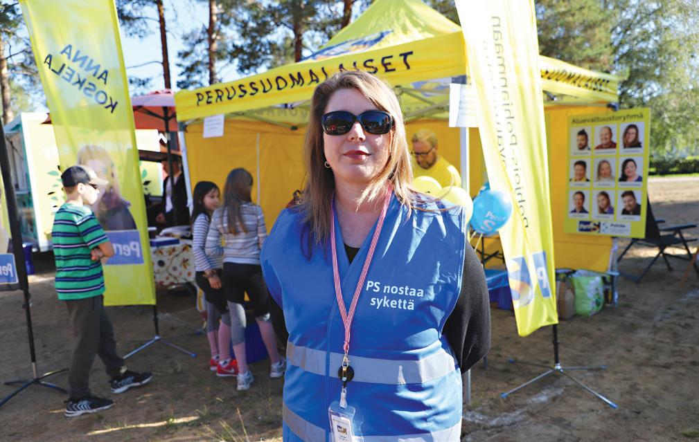 Myös kaksi poliittista puoluetta oli löytänyt tiensä markkinapaikalle. Olli Rehnin presidenttiehdokkuutta liputtanut keskusta kestitsi vieraita omalla teltallaan.