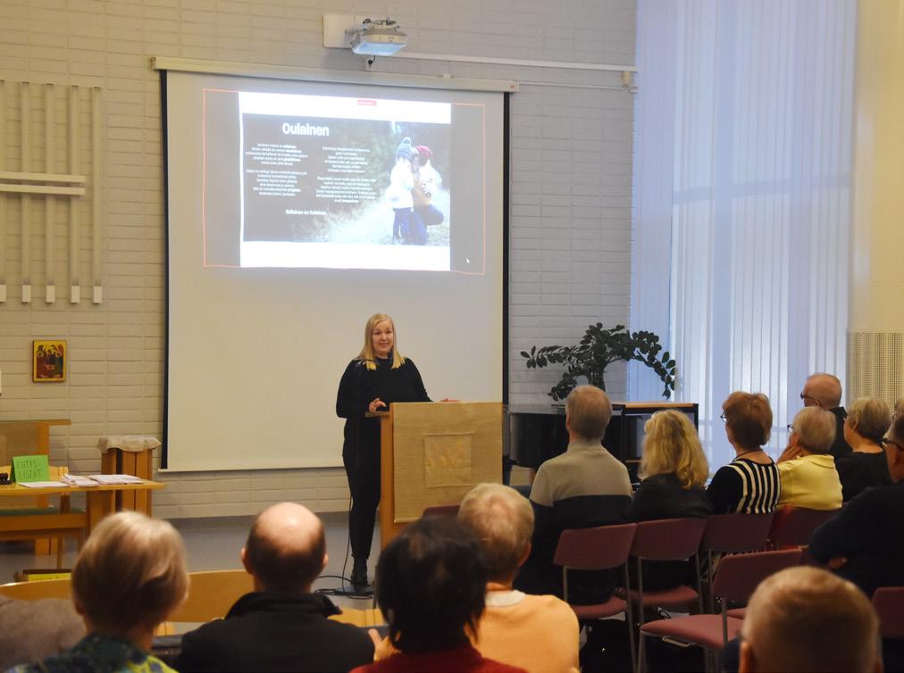 Oulaisten kaupungin tervehdyksen esitti kaupunginhallituksen puheenjohtaja Marjut Suviaro, joka toi esille kaupungin ajankohtaiset kuulumiset ja painotti yhteistyön merkitystä ikäihmisten hyvinvoinnin edistämiseksi. Marjut Suviaro myös kertoi, että kaupungilla on tarjolla ikäihmisille paljon erilaista ohjelmaa.
