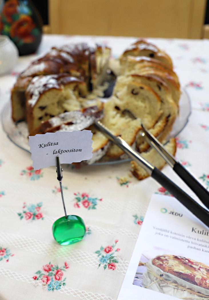 Marja-Leena Lievonen, ravintolamerkonomiopiskelija Nuutti Aho nautiskelivat Venäjältä kotoisin oleva kulitsa oli yksi esillä olevista herkuista.