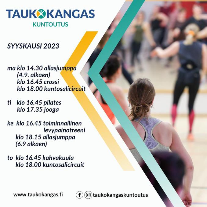 17:5018:35 Päiväjumppa 7.9 -30.11. To 12:00-13:00 Kahvakuulajumppa 7.9.-30.11. To 18:00 -19:00 Venyttely-, rentoutus- ja hengitysryhmä 7.9.-30.11.