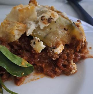 Moussaka. A little booster to the lasagne of option two is to replace the lasagne sheets with slices of aubergine, while adding a teaspoon of dried cinnamon and a teaspoon of dried oregano to the mix. Aubergine does need a little extra attention by grilling the slices so they brown up before adding to the layered dish. You can then use the same type of cheese sauce as above (again in option two.)