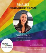 Happening on March 18th, our very own Carole Edrich is a finalist for trailblazer of the year. Find out more about the awards at neuroinclusivebusiness.com.
