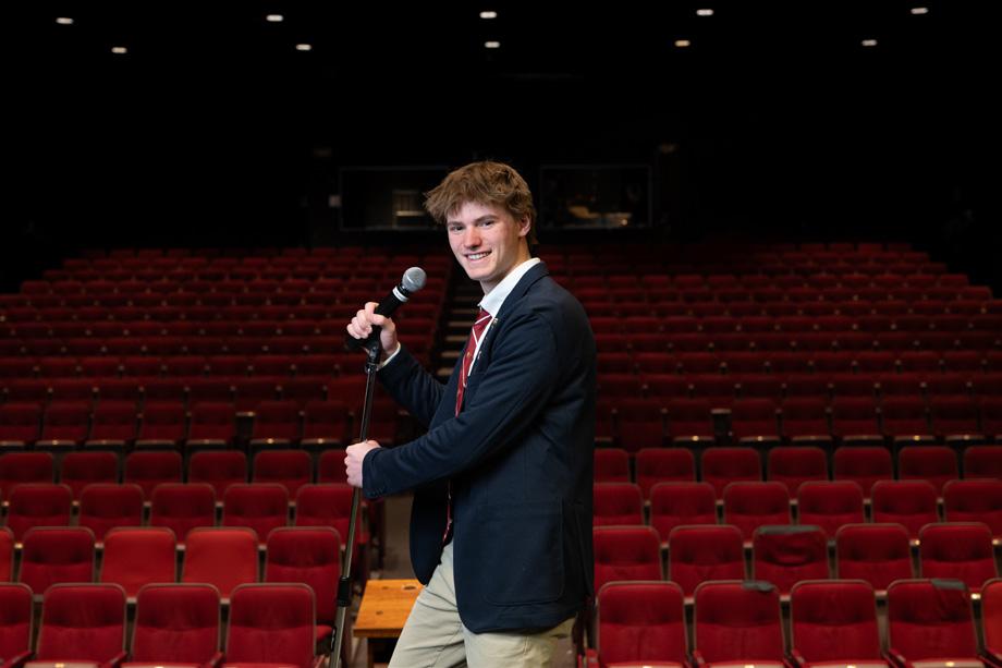 Senior Ben Hilburn leads his classmates in song at their final Sing for Your Supper (SFYS).