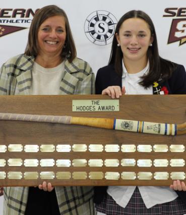 Cathie Herrick had a full-circle moment when her daughter Josie Elion ’25 was awarded the prestigious Hodges MVP award for field hockey at the fall athletic awards assembly—nearly four decades after she won that same award in 1985. Reflecting on what it was like to watch her daughter accept the MVP award that she herself had received, Cathy said, “It was nice to see her hard work pay off. She puts her heart and soul into everything she does, so it was a proud moment.” Herrick earned the MVP award in just her second season and then went on to be named the first All-American field hockey player at Kenyon College, where she also played lacrosse. Following her mother’s lead, Josie is committed to continuing her field hockey career at Hobart and William Smith Colleges beginning in the fall of 2025.