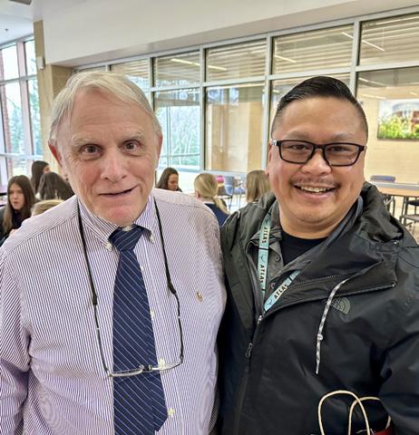 It was great to see Eugene Macaraeg on campus in February. After graduating from Denison University, Eugene became a combat medic in the Army, and he is currently a UPMC-STAT MedEvac Flight Nurse. He’s been flying with the teams now for 16 years, and he has been practicing medicine for a total of 26 years. Eugene came to meet senior Casey Gattie, who will be shadowing Eugene in May for his Innovative Senior Project, as well as to catch up with some faculty members, including his former history teacher, John Bodley. (See page 23 for more about Eugene.)