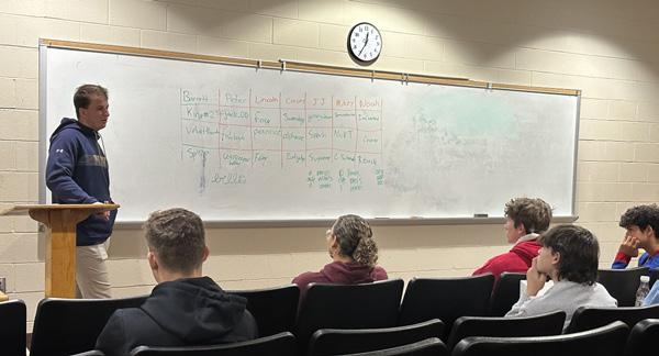 Jacob Randall ’25 and Ben Hilburn ’25 had some fun during Media Day for the Boys Varsity Basketball team. While this snap was from preseason, the squad lived up to the hype. They were crowned champs once again after defeating St. Paul’s in the B-Conference Championship.