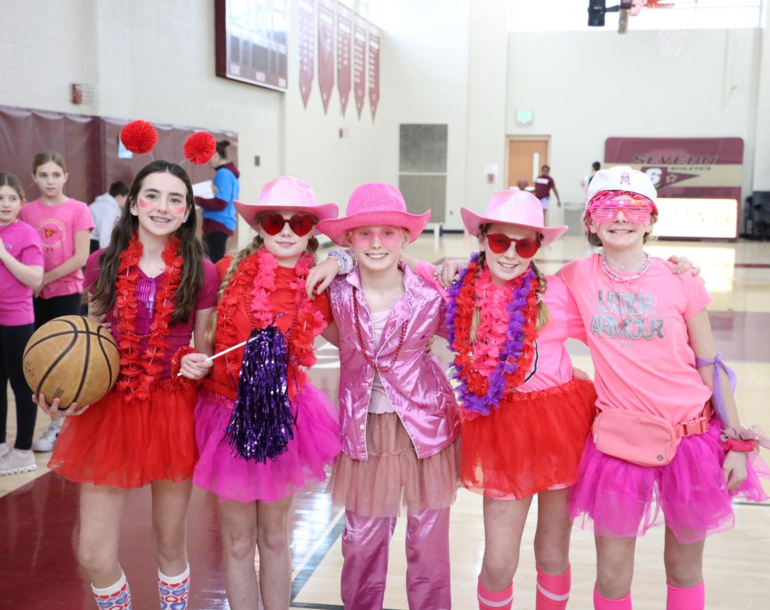 Severn Middle School hit the hardwood for the annual Hoops for Heart event, held in partnership with the American Heart Association’s American Heart Month. The program encouraged students to learn about heart health, the importance of regular exercise, and making positive lifestyle choices. Pink and red spirit wear were highly encouraged and sixth-graders Natalie Maloney, Ryann Hanley, Molly Chisholm, Emily Steele, and Ashton Hermanstorfer clearly understood the assignment.