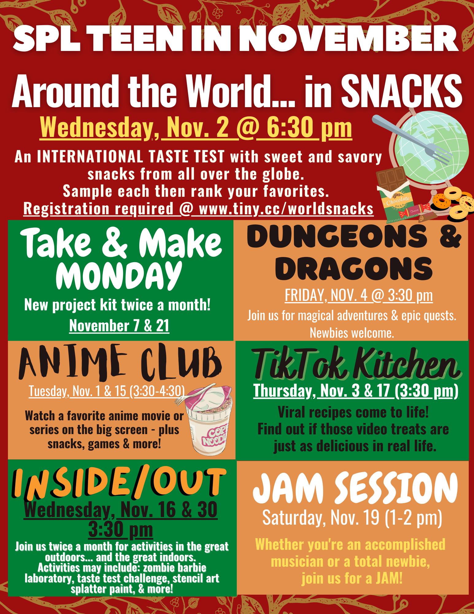 November is National Novel Writing Month (NaNoWriMo)! Let’s work on writing strategies together! This group meets in person and online. Register for the Zoom link.