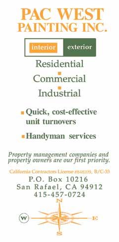 SF Apartment Magazine (ISSN 1539-8161) Periodicals Postage Paid at San Francisco, California and at additional mailing offices. POSTMASTER: Send address changes to the SF APARTMENT MAGAZINE, 265 Ivy Street, San Francisco, CA 94102.