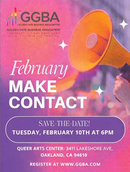 The next Make Contact will take place on Tuesday, February 10, from 6–8 pm at the Queer Arts Center in Oakland (3411 Lakeshore Avenue). As for all events in the series, it is free for GGBA members and $10 for guests. Light bites will be provided, along with another wine tasting from La Crema. The Queer Arts Center is a QTPOC-led organization supporting LGBTQ+ artists, healers, and creatives through arts programming, wellness services, and community advocacy. For more information and to register for the event: https://bit.ly/4k4AxTM