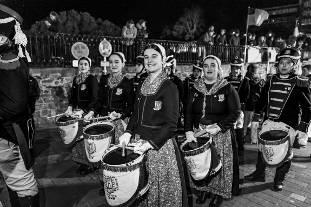 Enlafiestadela Tamborrada,lospersonajesy sumúsicarepresentanlavidacotidianadeunaciudadamura- llada donde,durantesiglos,convivieronsushabitantesconlosmilitares.Estaconvivencia,nosiemprefácil,estuvo marcadapor lapreeminencialegal delaautoridadmilitar,dadoquelaciudadostentabaoficialmentelacondición deplazafuerte