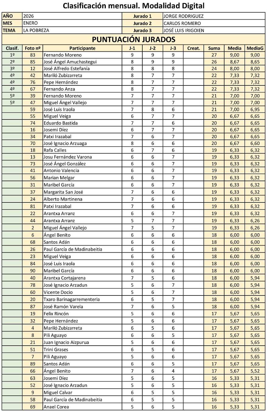 Enero:IRONÍA YHUMOREN LA FOTOGRAFÍA Echamosaandar enestenuevoaño2026 yasíel pasado22 deEnerodimos ungolpedetimóncentrándonosenalgunosautoresque,al contrariodelos vistosenlosdosmesesanteriores,secaracterizanpor unavisiónuntanto irónicay divertidadel mundoquenosrodeasinqueestoresteunápiceala profundidadeimportanciadesumensaje