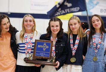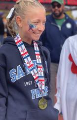 While three of the team’s members will graduate in 2026— Sophie, Pippa, and Ingrid Ehrmantraut—the team remains strong. Current junior Franny Anderson is the youngest of the 3-peat champions and now a seasoned veteran. She has approached each year as a learning experience, and will step into the top leadership role as a senior. Joining her will be twotime champions Sofia Fuge '27 and Eri Steeves '28, as well as newcomer Grace Mena '29, who placed an impressive sixth in this year’s championship race.