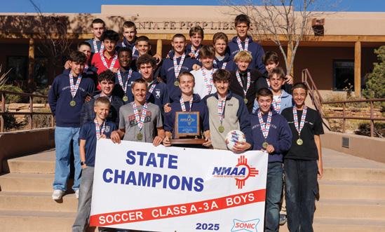 On the same Saturday that Prep’s girls cross country team claimed their 3-peat title on the course at Albuquerque Academy, our boys varsity soccer team was across town, playing in their second consecutive final at UNM’s soccer complex. The game against Sandia Prep was a nail-biter that saw eighth grader Aiden Nickson '30 score two second-half goals to level the scoreline and send the game to overtime. It ultimately ended in a penalty shootout, with goalkeeper Vince Baker '26 stopping three of the shots he faced to deliver the victory—and the team’s fourth State Championship title and first since 2016!