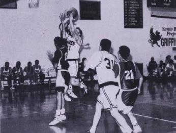 year, he averaged 18 points and 6.9 assists per game, ending the season with 80 steals. “Winning isn’t everything. It’s the only thing” reads the top of his senior page in the 1995 yearbook. And Dustin helped the Blue Griffins win a lot. In that final Prep season, before he would go on to play his freshman year at Whittier College, the team won the District Championship and was undefeated at home.
