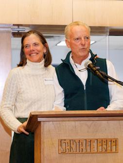 The evening also featured a special tribute. When Jim Leonard retired as Prep’s Head of School in 2020—having served 21 years in the role—it was at the height of the Covid pandemic. Classes had shifted online and Commencement events that spring consisted of a drive-by procession. While the administration and Prep community did everything they could to send Jim, and wife Story, off with the appropriate amount of fanfare and gratitude, a true celebration was limited by social distancing protocols. It was especially meaningful, then, that this year’s Alumni Holiday Party was planned in part as a celebration of Jim’s tenure at Prep.