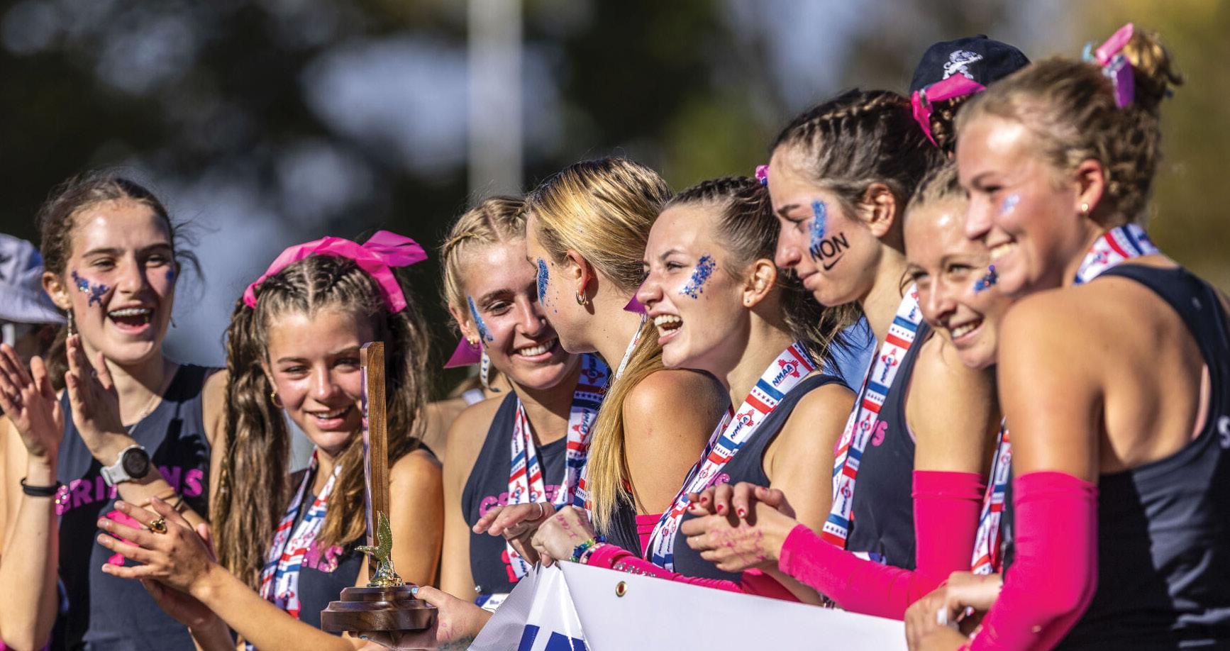 In 2023, the team truly had no expectation of a championship title ahead of the state meet. “The girls had worked really hard, but it wasn’t a given,” Lis says. “It was more in the spirit of ‘let’s see what we can do when we get to the line.’” What they did was impressive, with then-sophomore Pippa Barrett running a personal best to place second overall and three of the team’s runners finishing in