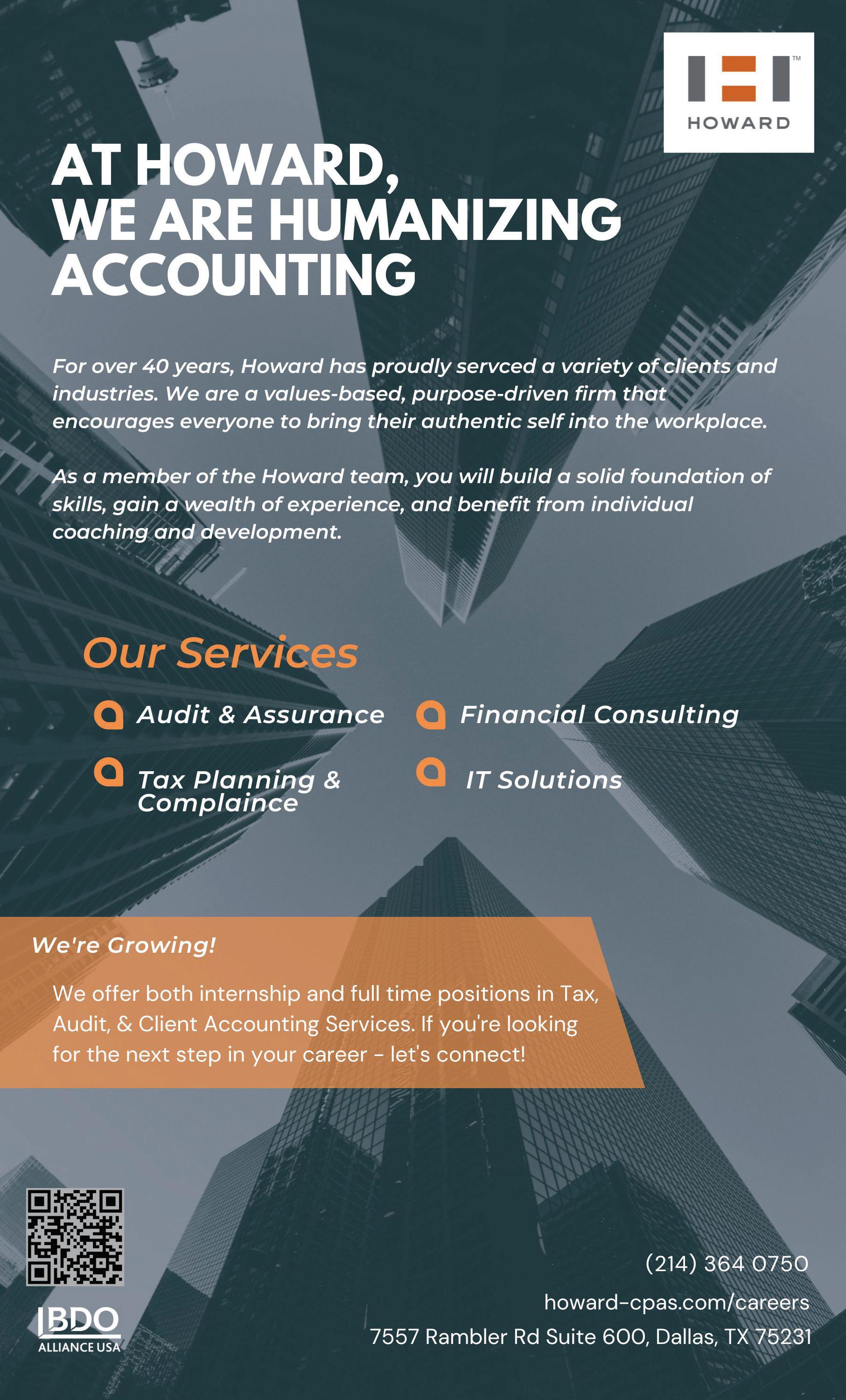 Paid Spring and Summer Internships; Tax and Audit: Staff, Seniors and Managers, Bookkeepers, and Administrative Staff; CPA/CPE Exam benefits