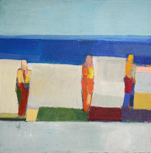 “Many of my painting s invoke feeling s of solitude or e ven loneliness. e fig ures appear connected but oen seem to be looking away from one another, absorbed in their own lives and stories, perhaps occasionally connecting , perhaps not, like strang ers in the same scene. At other times, fig ures seem to be waiting for someone to arrive or for an activit y to beg in, anticipating a meeting or a reunion for instance. Whate ver the circumstances, there's always an outcome awaiting discover y.