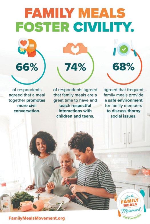 More than two-thirds of respondents expressed a belief that civility in America is worse today compared to ten years ago, but 74 percent said family meals are a great time to have and teach respectful interactions. Frequent family meals create a safe environment for families to discuss thornier societal issues.