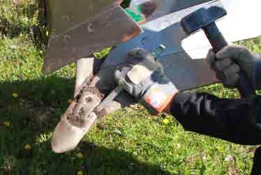 The only tools needed are a chisel and a hammer (2 kg). Field tests reveal that, as an average, 3 points can be mounted on the same Knock-on® holder. No bolt to unscrew helps save time. In addition, when the holder is worn out, it is normally also time to change the share, without unscrewing the holder. Very handy!
