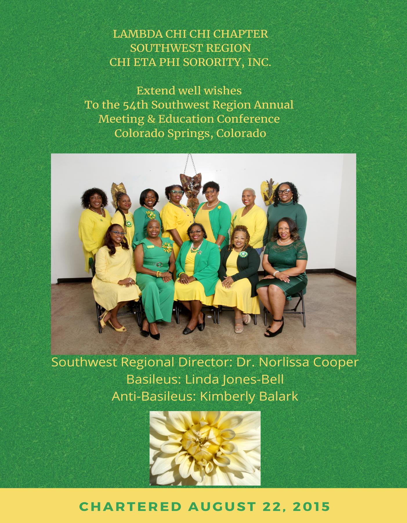 We wish Links Joy Powell and the Chi Eta Phi Sorority, Incorporated greetings and well wishes for the upcoming 54th Southwest Region Annual Meeting and Education Conference!
