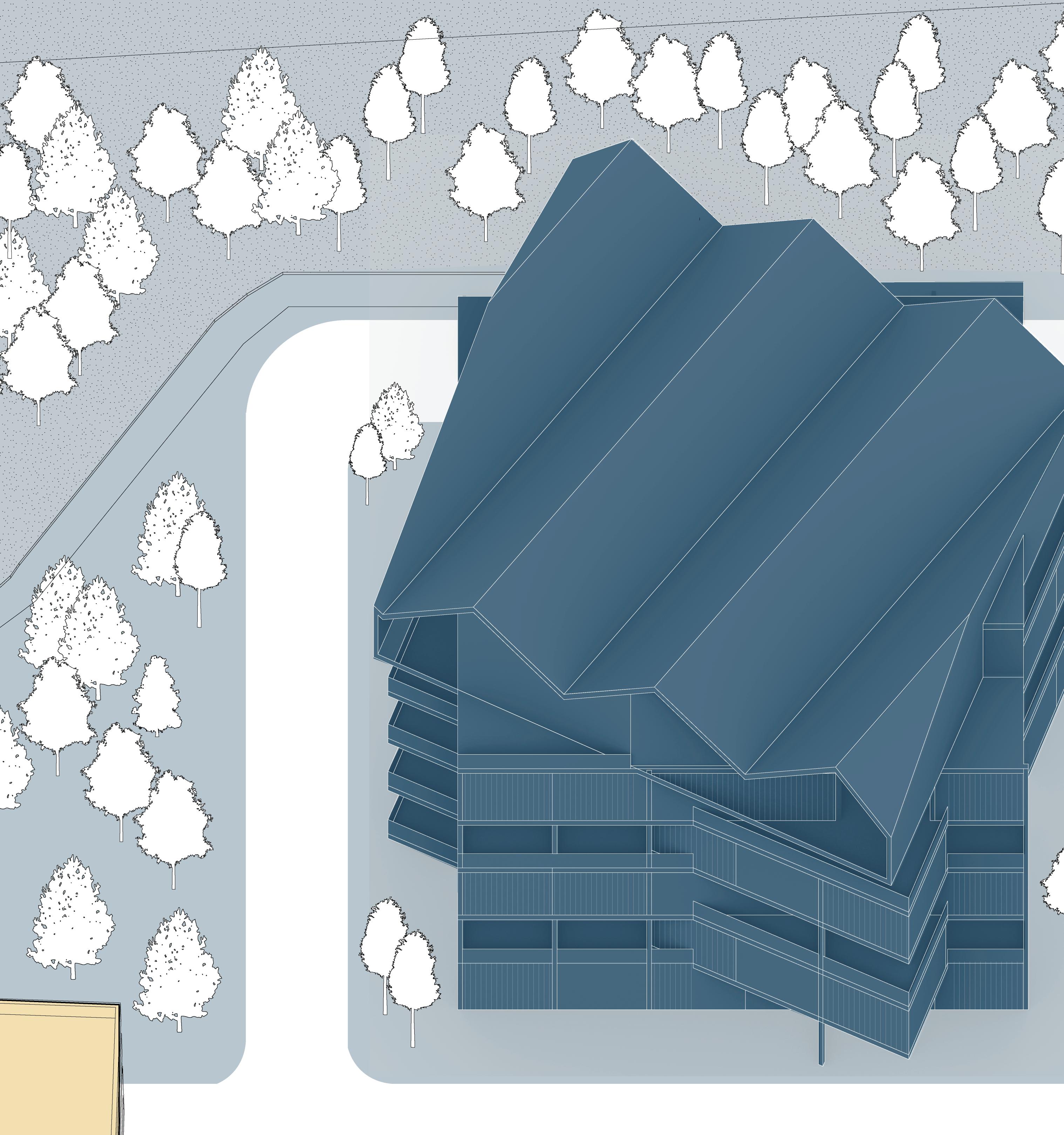 roof design are a reflection of the program below it. program, the bigger the roof aperture.