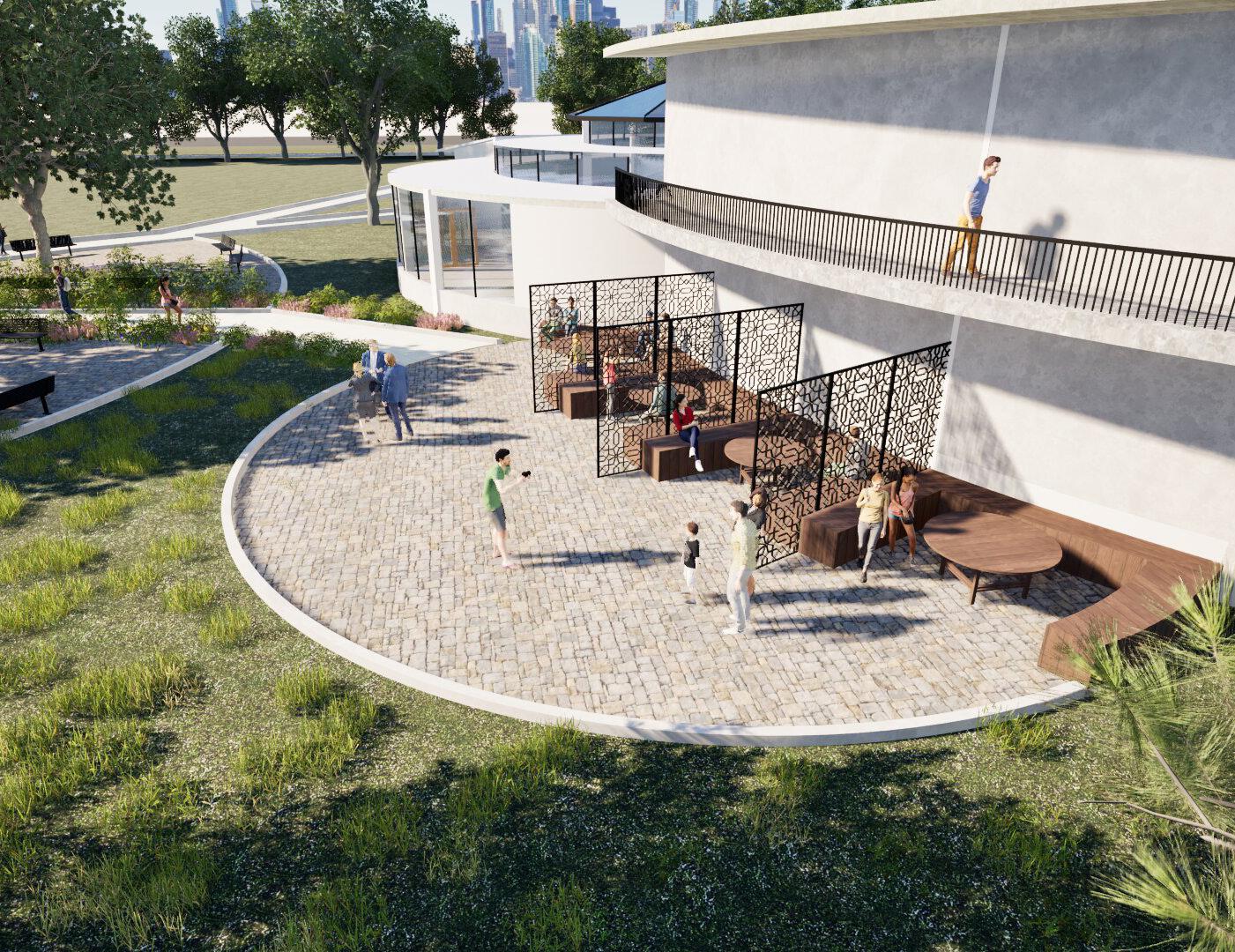 The vertical farm supports the residents with fresh produce and integrates seamlessly with the residential units. Photovoltaic panels, installed at a 30-degree angle on the roofs of both the residential units and the farm, maximize solar energy production, providing substantialenergysavingsandsupportingthenet-zero energygoal.