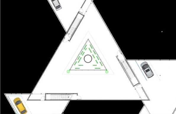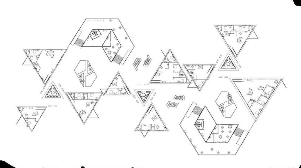 Each residential unit adopts a triangular form, optimizing space ef昀椀ciency by utilizing corners for storage and aligning the layout with the building’s main lines to eliminate unusable areas.