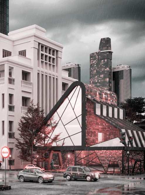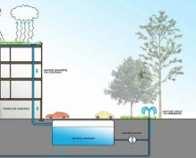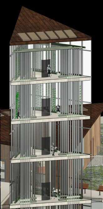 The basement houses parking for the residents and features a rainwater harvesting system. Collected rainwater is stored in basement tanks and pumped for irrigation in the vertical farm, signi昀椀cantlyreducingannualwatercostsforhouseholds.