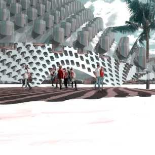 As the kish island host many tourists during a year,many urban development project are being designed in this island.This hotel is located by the sea, so the design of this project was limited in height.The hotel is designed in two floors. the ground floor includes the office area, gym, restaurant, cafe and also an outdoor swimming pool.this hotel includes 16 rooms, that are placed on the first floor.On the second floor there is a cinema hall, a restaurant and an indoor playground for children.