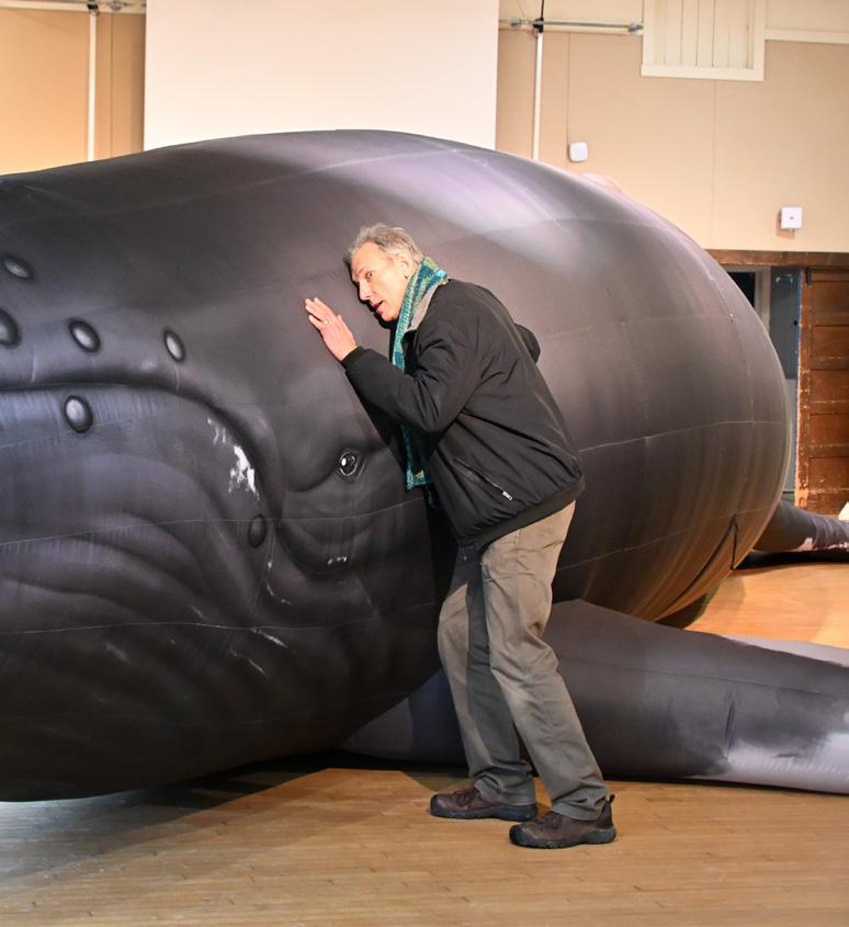 Mr. Nunez hugs Nile the whale, a lifesize inflatable humpback that takes Grade III’s Thematic Study to the next level.