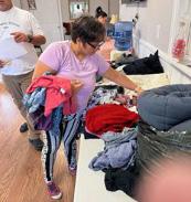 The Bread House accepts donations of adult clothing items to distribute to those in need when they come to the Bread House for food. We received garbage bags full of coats from Kitchen Solutions and our customers lined up to peruse the coats for their size. If you have gently used clothes, please consider donating them to the Bread House for us to distribute to those in need. You may drop off clothes or food on Monday, Wednesday, or Friday from 9:00 - 12:00 at the Bread House in Cross Corner. Thanks in advance for your support!