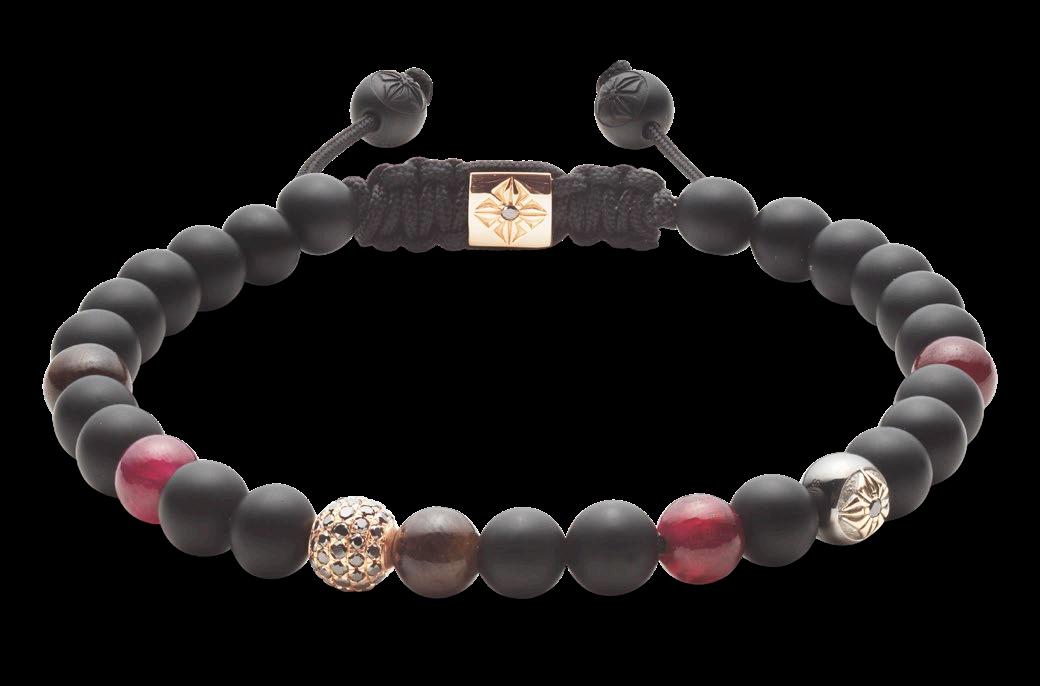 6mm SHAMBALLA® Non-Braided Bracelet | Black Diamonds, Greenland Rubies, Brown Sapphire, Onyx, 18K Rose & Black Rhodium Plated Rose Gold