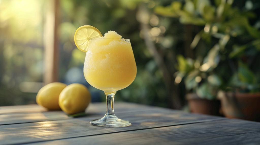 - In a blender, combine the cooled lemon syrup, citrus vodka, limoncello, lemonade, and ice.