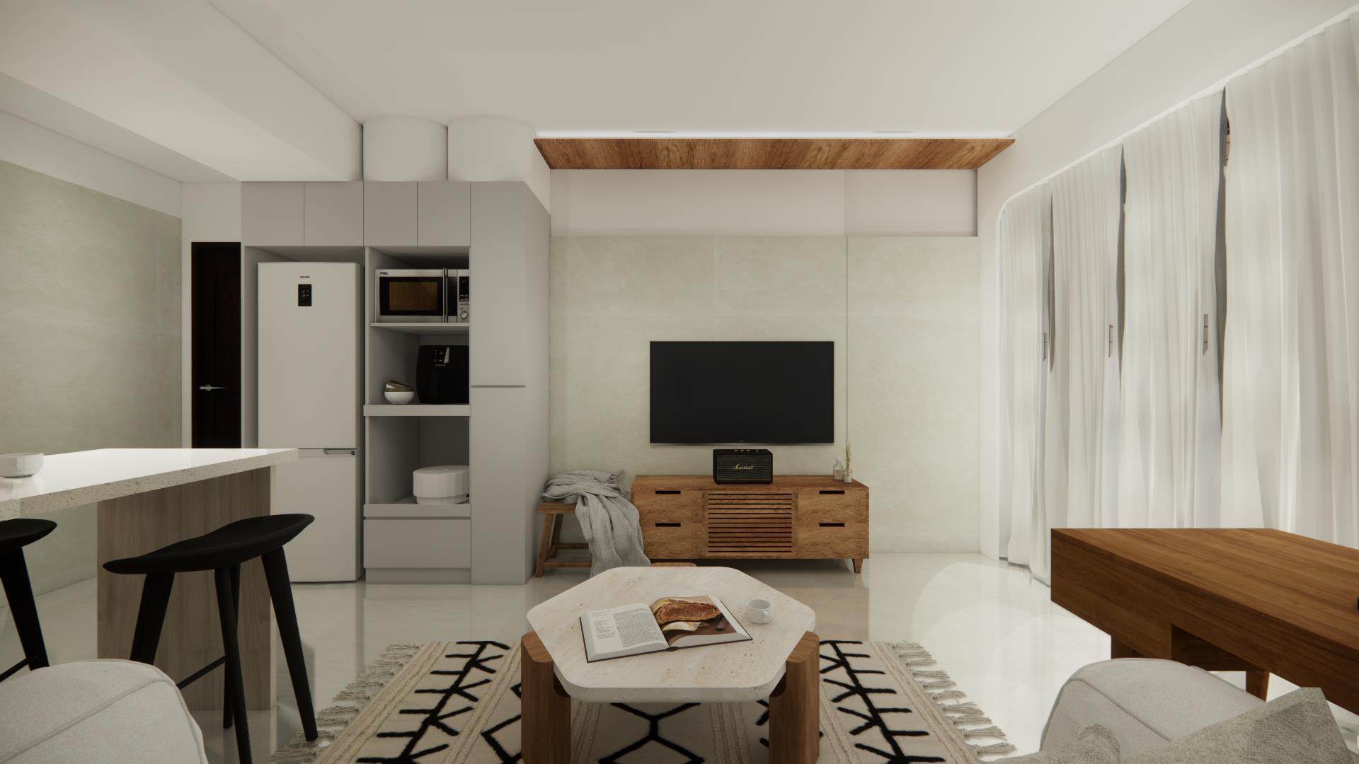 木紋包梁 + 線燈點綴