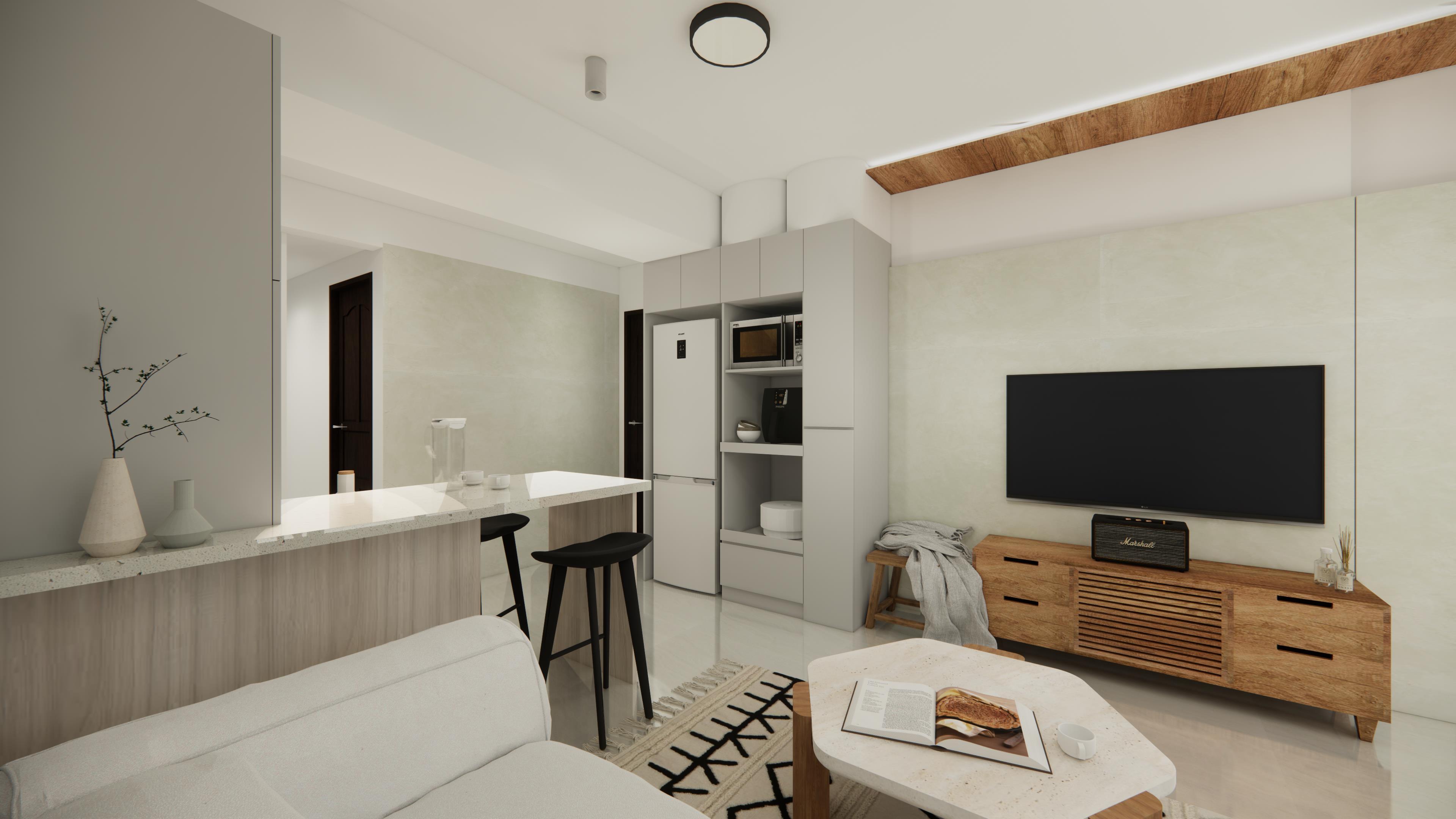 現有的玄關空間較模糊 , 卻是收納需求較高的地方,考量後最終將鞋類收納的機能最大化 而檯面的可藉由活動傢俱輔助 ( 例如活動推車 ) 可放置鑰匙、口罩、酒精噴等日常小物