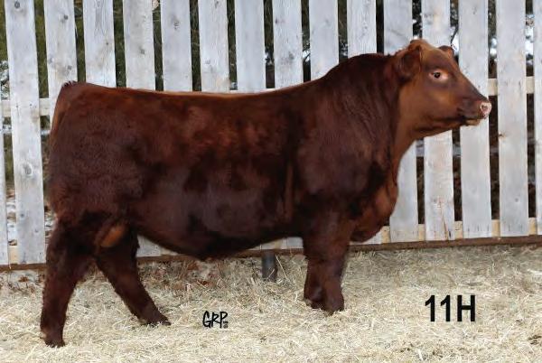 Super long made and stout. Lots of hip and natural muscling Structurally sound His dam 25H has been one of our most productive cows, her calves are always at the top of the pen.
