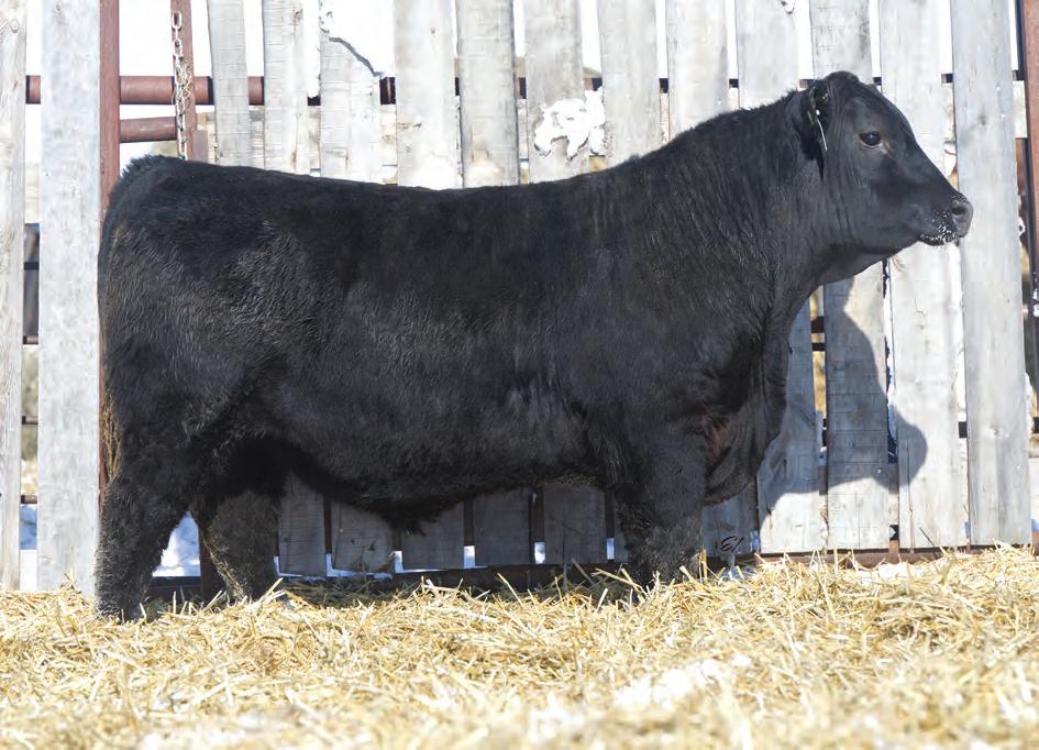 Super clean fronted. Lots of length of body. Good foot structure underneath him. His dam 3J that we purchased from Arntzen angus has a bull calf in our sale pen since we bought her.