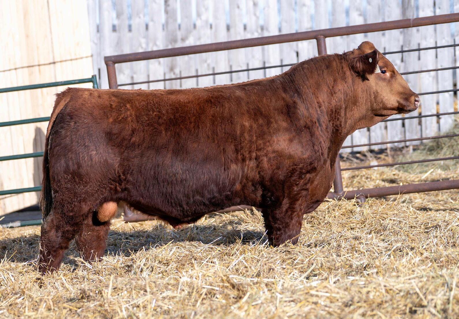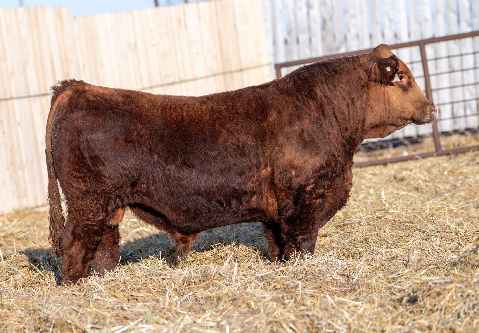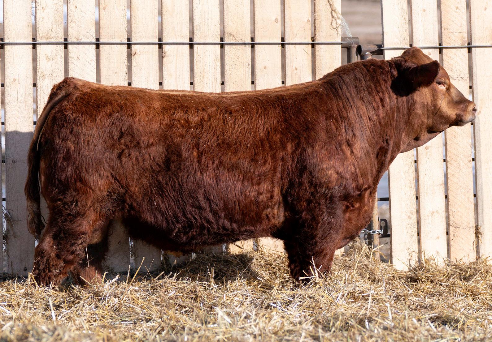 45M is a deep-red, mass-backed bull loaded with muscle and built on a strong, correct structure. He combines power, substance, and structural integrity in a high-quality package.