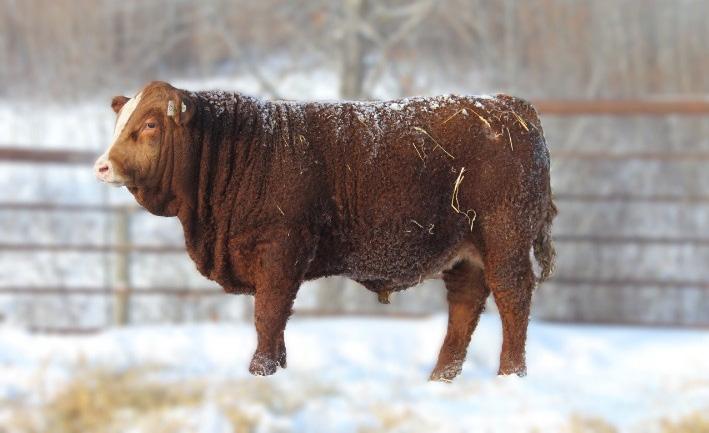 We kept Magnum back last year, due to his late March birthdate. He is made up of some truly outstanding genetics on both sides of his pedigree, with Crossroad Radium 789U on his dam’s side and Kuntz Super Duty 4Y on his sire’s side. We feel he would be best used on mature cows, as he is a power bull.
